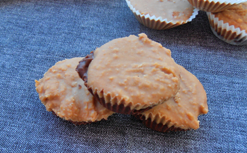 Fundimos el chocolate al baño maría y ponemos una capa de chocolate al molde y encima la crema de cacahuete, dejamos 1 hora en la nevera y desmoldamos.