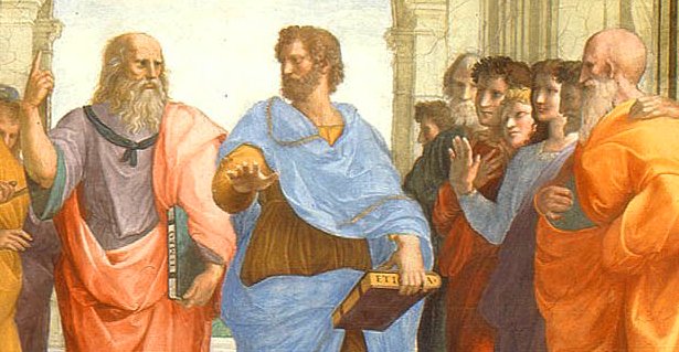 Platón y Aristóteles (detalle de La escuela de Atenas, (1509), de Raffaello Sanzio).