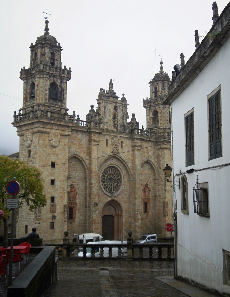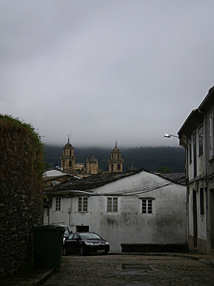 Un anciano gracioso que tiene una librería te dice que él inspiró el protagonista de “Merlín y familia”. La verdad es que no me acuerdo de ningún personaje que pueda inspirarse en él. Pero da igual, ves la librería con un caos de libros de varias épocas, ves al hombre cuando era muchacho en una foto en blanco y negro en el escaparate que parece escapado de la sustancia de las historias, y él mismo en el silencio de la calle contando recuerdos lejanos parece que te mete en una historia. Te alojas en el Seminario y un hombre con aspecto de polvorón de sacristía te apunta en el registro. Recorres los pasillos infinitos del claustro y entras en una habitación enorme donde pareces un obispo clandestino que mira la catedral y los montes. Y al día siguiente desayunamos Consuelo y yo solos en una sala con cientos de mesas donde una especie de fantasma te pone el café con tostadas.