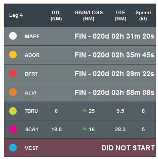 Team Vestas wind, que no ha tomado la salida en las dos últimas etapas tras embarrancar en la segunda, es séptimo con 28 puntos. Recordemos que el equipo de bandera danesa está intentando reconstruir su barco para poder volver a la competición.