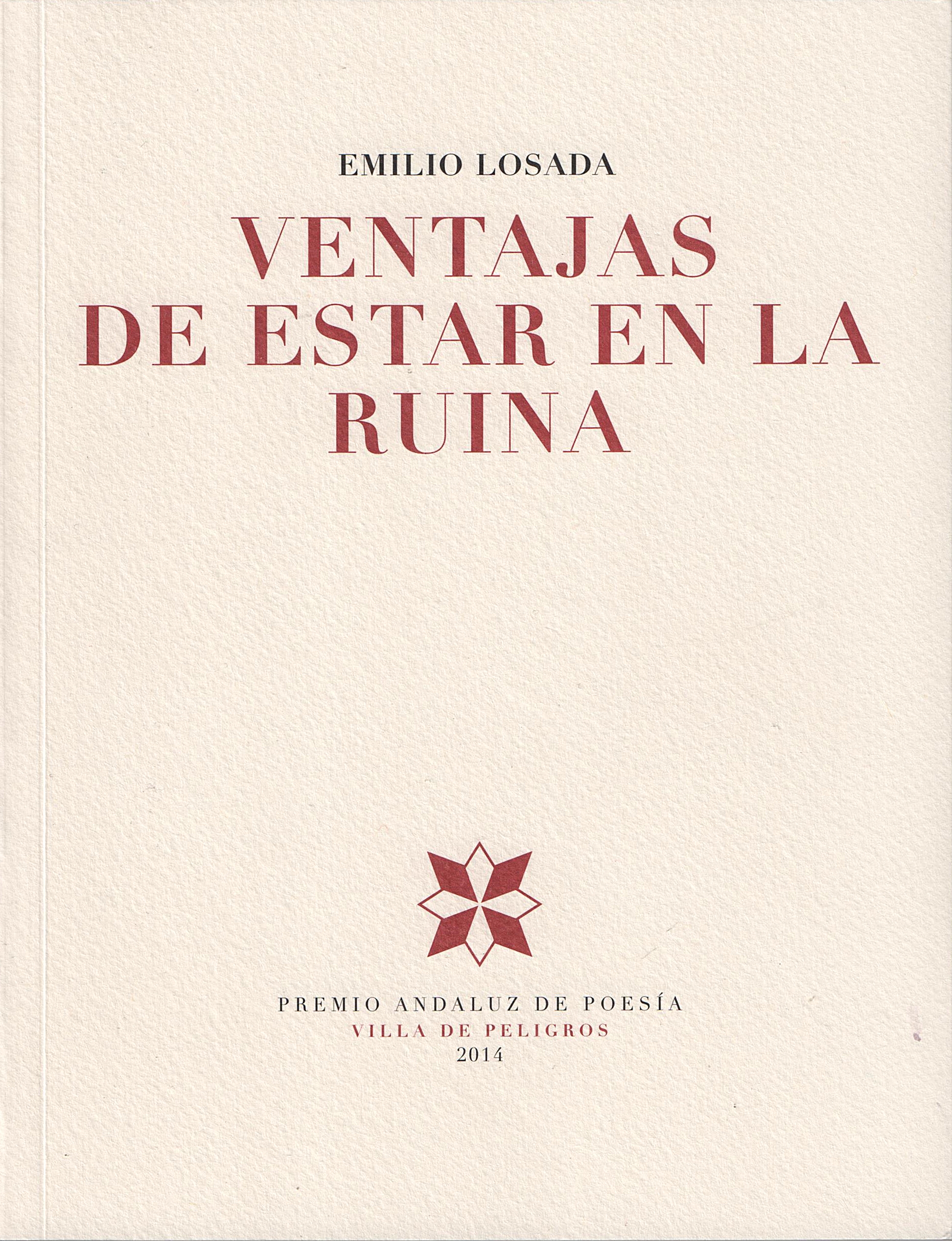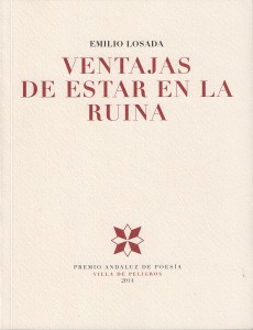 Con nocturnidad y alevosía. Así he leído ‘Ventajas de estar en la ruina’ (Premio Andaluz de Poesía Villa de Peligros 2014) de Emilio Losada. Le tenía ganas. Y he visto escenas en blanco y negro. He vagado por una ciudad engañosa, mínima, tardía y desquiciante. La atmósfera de este poemario me ha envuelto de spleen, de mujeres, de amores, de taxis, de recuerdos, de maletas por hacer o deshacer, de huidas, de lecturas. También he observado la derrota: “…y alardear de derrota / ante otra hoguera sitiada / por la imberbe prole del éxito”. La fuerza que hay en la derrota. Dividido en tres partes, ‘El homónimo’, ‘Las Estampidas’ y ‘El último’ (un bellísimo poema de amor, no sé si imposible amor), pasean por sus hojas gentes que se lanzan a su abismo cotidiano, princesas y bribones en batín, viajeros y barmans de venta de carretera, referencias literarias como Nicanor Parra, Mallarmé, Baudelaire o Fernando Cañas, versos tan aparentemente libres que a veces se nos escapan de las páginas. Rupturas y encuentros. El observador – el yo poético de ‘Ventajas…’– no es inmutable, pero parece no participar. Hablemos con el culpable: