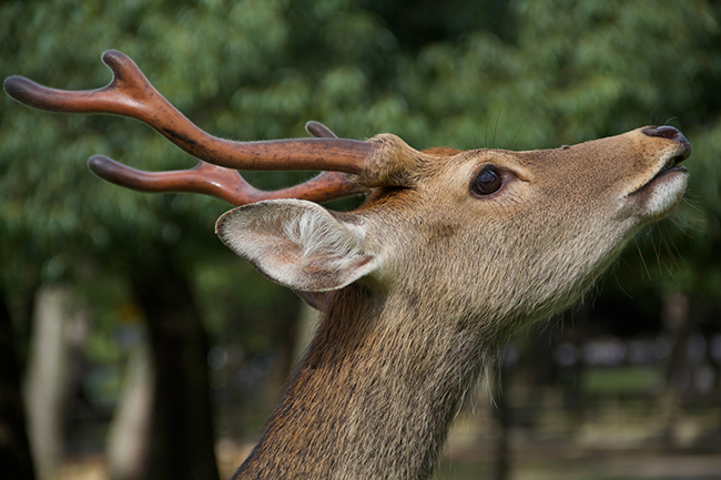 Los ciervos se consideraban mensajeros de los dioses sintoístas y era peligroso hacerles daño. Una vez invitaron al dios Takeno y éste apareció montado en un ciervo blanco. Todavía ahora son mensajeros de la vida y la gracia y son el Encanto de Nara. Quedaron muy pocos en la Segunda Guerra Mundial pero luego se recuperaron. A mediados de octubre los tiran al suelo a todos y los sacerdotes sintoístas les cortan los cuernos.