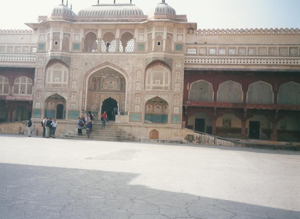 En primer lugar está el Salón de Audiencias Públicas. Hay columnas con capiteles en forma de elefante y galerías con celosías arriba. Siempre en la India hay que dejar que entre el universo y la atmósfera. Las fortalezas son potentes pero los palacios son gasas de piedra. A la derecha está el templo de Kali, la diosa terrible o fascinante que provocó los arrebatos místicos de Ramakrishna y que se parece a la Diosa Blanca de Robert Graves. La diosa ( protectora del lugar) mandó a Man Singh que fuera a buscarla al fondo del mar, el maharajá cumplió , y allí la tenemos tallada en un solo bloque.