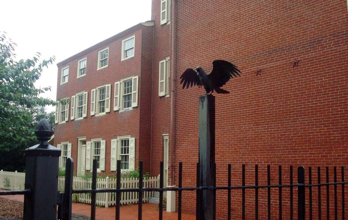 Creo que era al atardecer. Solo la vi por fuera. Era una casa adusta y simple en el norte de Filadelfia. En el jardín se veía una escultura representando “El cuervo”. La casa era silenciosa y las ventanas cerradas. Fui andando hasta allí y el barrio estaba bastante callado cerca del río Delaware.