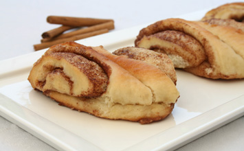 Mezclamos la canela con el azúcar. Con ayuda del rodillo sacamos un rectángulo de 50 cm x 25 cm. Untamos cada rectángulo con 60 gr mantequilla blanda, y espolvoreamos con la mezcla de canela y azúcar. Enrollamos empezando por la parte larga. Cortamos el rollo en 12 rodajas de 1,5 x 6,5 cm.