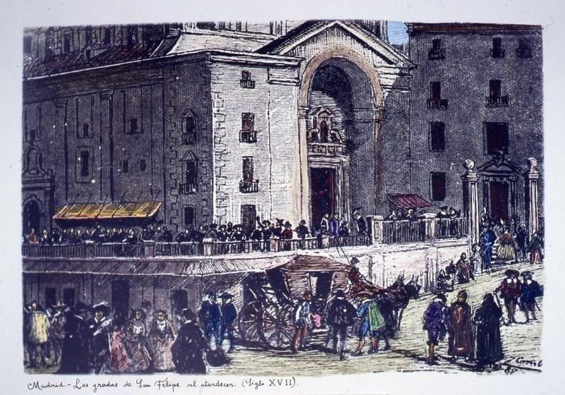 Leyendo El diablo cojuelo de Luis Vélez de Guevara damos un paseo alucinante por Madrid en el siglo XVII. Nos habla de la iglesia de San Salvador, en la calle Mayor, junto a la Plaza de la Villa, que era la más alta de Madrid. Nos habla del convento agustino de San Felipe, al comienzo de la Calle Mayor. Allí había vivido Fray Luis de León. Delante estaban las Gradas de San Felipe, una plataforma muy grande donde corrían todos los rumores, le llamaban el Mentidero de Madrid. También allí se reunían los soldados que iban a partir para Flandes. Un día con tanta gente la plataforma se vino abajo y hubo un montón de muertos y heridos. Nos habla de la Puerta del Sol, donde estaba la Fuente del Buen Suceso (coronada por la Mariblanca) , en la cual vendían agua aguadores gallegos. Y de la Carrera de San Jerónimo que llevaba al Paseo del Prado, que era un paseo en las afueras por donde fardaban los nobles con sus carrozas y las damas y las falsas damas. Y en lo alto de un cerro se veía el Convento de los Jerónimos. Por otro lado iba el Manzanares, una especie de río. Le llaman río, dice Vélez de Guevara, porque se ríe de los que intentan bañarse en él. Es un paseo fantasmal el que hacemos.
