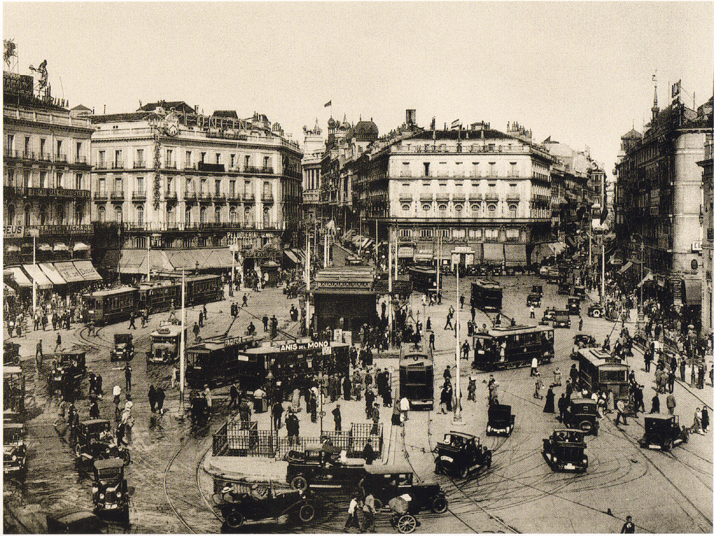 ¿Y ahora que vemos? Una calle Mayor en la que han desaparecido las iglesias y los palacios antiguas. Una Plaza de la Villa arrinconada donde queda la Torre de los Lujanes y un antiguo ayuntamiento raquítico y una Casa de Cisneros. Hay algunas casas fantasiosas de estilo vagamente art nouveau o con restos de elegancias fantasiosas. Y luego está la Puerta del Sol a la que han mareado frenéticamente en los últimos años. Parece una prostituta con la que todos los alcaldes quieren hacer algo, y aún todos los concejales. Después de unas obras de siete años hicieron una entrada al metro que parece un nido de cucarachas de cristal y movieron la Mariblanca y movieron el Oso con el madroño. Al pobre Oso le han hecho dar tantas vueltas que ya debe estar atontado y desengañado de la raza humana y le deben de parecer gilipollas todos los que se citan a su lado. Y desaparecieron los cafés en los que se reunía Valle Inclán y en los que hablaba Ramón Gómez de la Serna. No hay plaza más manoseada y despreciada y mangoneada que la Puerta del Sol, más bien parece la Puerta de la Plastilina (y se ve nostálgicamente arrebatadora en algunas fotos antiguas) . Y luego viene la Carrera de san Jerónimo, pero antes una plaza maravillosa de vuelos góticos (la Plaza de Canalejas, con Banesto y sus elefantes, con la Casa Allende y sus voladizos) a la que quieren destruir o desvirtuar. Y luego viene un Prado al que incluso querían quitarle los árboles.