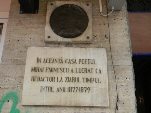 Una vez Consuelo y yo íbamos en un viaje muy largo por tierra hasta el Cáucaso y paramos un día en Bucarest. Y justo enfrente de nuestro alojamiento, en Lipscani, 19, en un edificio de estilo neorrenacentista, había una placa que indicaba que allí había vivido Mihai Eminescu, el gran poeta de Rumanía. Y me sentí muy emocionado y se lo dije temblando a ella. Entramos en un patio con una fuente y miramos con añoranza las escaleras pero el edificio estaba en obras. Y allí no había ningún museo ni nada parecido. Ella como siempre se planteaba llamar a las puertas, preguntar a la gente si sabía algo de Eminescu, compartir nuestro descubrimiento con ellos. Pero no había nada que hacer, ya era bastante emocionante haber visto aquel muro y aquella placa.