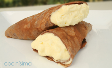 Rellenar el crêp con la mousse de mango y enrollarlo.