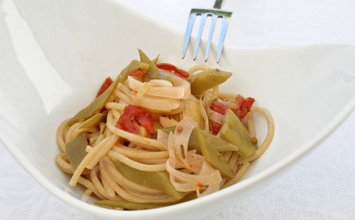 Cortamos el puerro muy fino y lo añadimos a las judías, dejamos un momento.