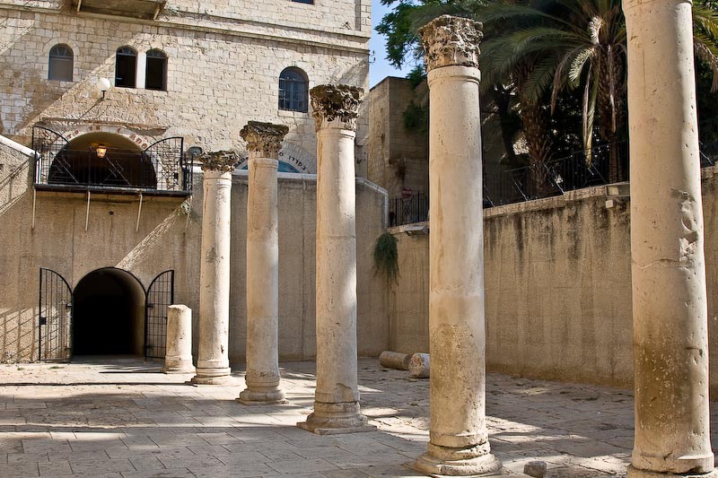 La luz tibia del sol tamizada al llegar a algún callejón íntimo, desarmada de su potencia aplastante, permite a cualquier ser humano escuchar los latidos de su interior. En la calle Nachlaot hay pequeñas casitas con jardines, árboles inclinados, jarrones que se desbordan, flores de todas las clases. Está en la zona judía pero cualquier ser humano puede latir con esos susurros. Las columnas corintias solitarias que quedan de edificios romanos ya no tienen lo aplastante del Imperio, tienen solo una persistencia solitaria, un latido secreto, un susurro apasionado en sus capiteles corintios.