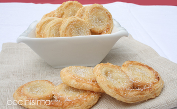 Colocamos una lámina de hojaldre encima de otra y con el rodillo aplastamos hasta conseguir una placa de aproximadamente 55 x 22 cm y aplicamos la mantequilla con ayuda de un pincel.