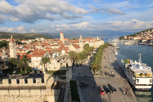 Atardece en el muelle de travertino blanco que reluce con esos últimos rayos del sol que embellecen Trogir, aunque no lo necesite. Decido pernoctar en ella aunque Split, mi próximo destino, no se halle muy distante, así es que vuelvo al interior de la ciudad, busco una casa de huéspedes en uno de los callejones y llamo. Hay mucha influencia italiana en la zona, hay descendientes de italianos que prefirieron quedarse a pesar del acoso del régimen comunista de Tito, así es que con la mujer que me abre la puerta me entiendo en italiano y por gestos, y ella me acompaña a una habitación del tercer piso, trepando por escaleras estrechas, una última planta con un pequeño balconcito desde el que contemplo la espigada torre de la catedral. Me lo quedo, a pesar de que la mujer no acepta tarjetas de crédito, y acuerdo que ella me haga el desayuno en la planta baja del inmueble, en su casa, cuando me levante a la mañana siguiente para seguir viaje.