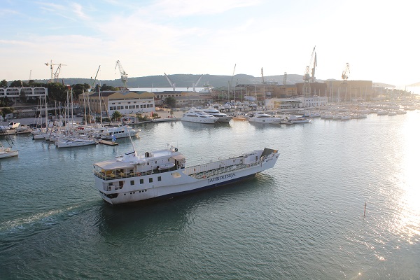 Salgo por la puerta romana cuando el sol agoniza con un fogonazo de belleza que se refleja en las aguas del puerto y en los barcos que hay amarrados. El Petrina es uno de esos grandes y nobles navíos anclados en Trogir que puede dar la vuelta por el Adriático y asomarse al Mediterráneo. Unas nubes oscuras, de un gris plomizo, pintan el cielo y el agua del mar del mismo color, mientras la luz que las atraviesa centellea en las casas de la población. Cuando se pone el sol regreso a mi hospedaje arrastrando la maleta por ese suelo blanco que no acaba de perder su luminosidad aunque el astro rey se haya ido a dormir bajo la marina línea del horizonte.