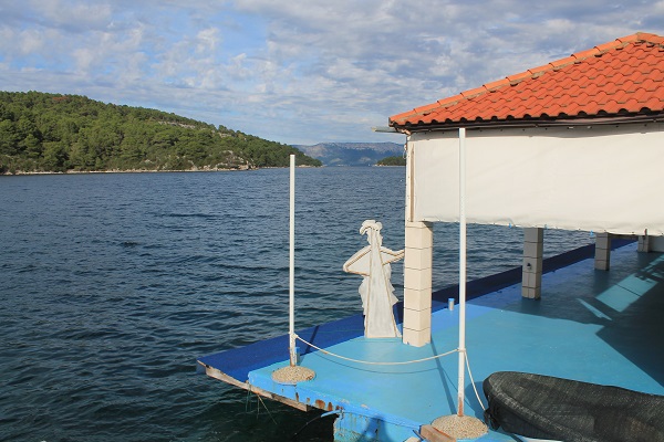 Mi ferry que me lleva a tierra firme sale a las tres, así es que, por aburrimiento y por matar el tiempo, me doy un último banquete de pescado en la vertiginosa población de Sobra, en el único restaurante abierto junto a un mar embravecido que agita las barcas de pescadores como nueces. La parrillada de pescado con langosta, servida con arroz negro de tinta de calamar y col y patata machacada, es exquisita. Me estoy atiborrando de pescado estos días en Croacia. Abundan además, las langostas a juzgar por las jaulas que veo por todas partes para cazarlas y la que me ponen. A las dos y media, tras dar un trago al aguardiente que la tímida, delgada y hermosa camarera me sirve como obsequio de la casa (un par de copas y me voy derecho al agua) voy con mi coche al embarcadero de Sobra, a tomar el barco que me lleve a tierra firme, y de allí a Dubrovnik, en el extremo de este país estrecho que estoy recorriendo de punta a punta.