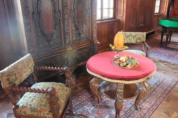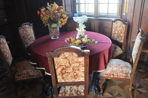 Confieso que me cansan los castillos, que no son mi fuerte salvo los del Loire, por su belleza, o los de Baviera por la excentricidad de su monarca mecenas de las artes. Pasear por sus estancias, sino hay buenos cuadros, me parece un esfuerzo inútil. Hay una cierta severidad en todas las salas que voy viendo cuando la guía y el grupo me dejan a solas para hacer algunas fotografías. Algunos artesonados de los techos son notables en las salas más regias. Los dormitorios son deprimentes, con sus camas con cobertores de color carmín oscuro, muebles rústicos de madera y la escasa luz que se filtra por los ventanales. En cada estancia hay una enorme estufa de porcelana. Por los ventanales emplomados se puede disfrutar del paisaje de los jardines que hay alrededor del castillo, así es que por uno de ellos veo a una novia que arrastra la cola blanca de su vestido blanco de organdí por un cuidado prado ajardinado de las proximidades, de la mano de su novio y el fotógrafo que inmortalizará su día de felicidad. Pero la decoración general del edificio no es armónica. Relojes, espadas, pieles de jabalí, cornamentas de ciervo, muebles de marquetería, se distribuyen por las habitaciones sin mucho concierto. No puede faltar la sala china, con piezas enormes de la dinastía Ming, muebles milimétricamente decorados, altorrelieves y papel de seda en las paredes; ni tampoco la de música, la de las señoritas, con su piano y cuadros ligeramente sensuales y evocadores de la poesía en sus paredes.