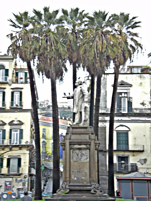 El barrio se abre con la tumba de Virgilio al pie de la estación de Mergellina y de la iglesia de Santa Maria de la Gruta. Estaba en un parque cerrado a la entrada de un túnel interminable y no dábamos con ella. Cruzamos el túnel en medio del estruendo dantesco de los coches y nos atenazaba el miedo y la soledad. Y luego tuvimos que cruzarlo otra vez. La tumba estaba en un jardín solitario, detrás de unas rejas adustas y silenciosas. Y entonces me acordé de aquel poeta que pone pasiones misteriosas en mitad de un gran poema propagandístico, que pone misterio etrusco (y tal vez celta según algunos) en medio de la epopeya latina, que al final de su vida pretendió destruir el poema para replantearlo con más autenticidad y murió de unas fiebres en Brindisi ( tal vez asesinado por Augusto, que no quería que cambiara el poema), tal como cuenta Herman Broch en “La muerte de Virgilio”. Y también en ese parque está enterrado Leopardi, el hombre de la angustia perenne, el que no estaba contento con nada , y que buscaba amistad con las estrellas. Los dos angustiados estaban allí en Posillipo, que en griego significa “el lugar donde se calma el dolor”. Parece que todos, los vivos y los muertos, van a buscar una vitalidad misteriosa al barrio de Posillipo. Y el escritor gallego César Antonio Molina lo convirtió en emblema de los lugares más vitalizadores del mundo en su libro “Lugares donde se calma el dolor”.