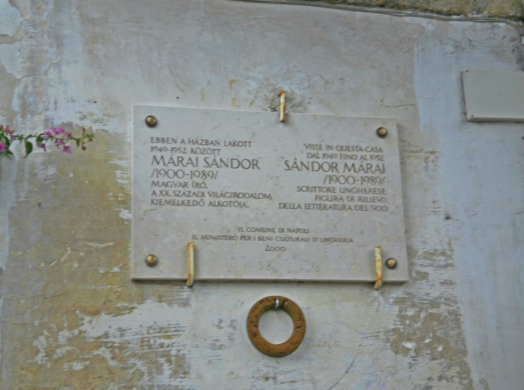 En lo alto del barrio, en Niccolo Ricciardi, 7, vivió en los años 50 Sandor Marai, el escritor húngaro exiliado que encontraba en los respetables burgueses secretos volcánicos que estallaban al final de sus vidas, o pasiones increíbles que se mostraban en noches interminables, o amores inconscientes que ni siquiera sabían su nombre. Consu y yo visitamos esa casa hace unos años. La vivienda estaba completamente abandonada, los pisos derrumbados sobre una escalera, los frutos pudriéndose en un jardín. Solo una placa recordaba su presencia en una casa vecina y unos hombres lamentaban que el ayuntamiento no hiciera un museo. Pero yo me imaginé los paseos que daba todos los días aquel hombre callado y de costumbres que llevaba dentro de sí mares y tormentas profundas. Pensé como miraría el mar aquel hombre que hablaba de secretos llenos de vida que se mantenían subterráneos y estallaban en reuniones decisivas.