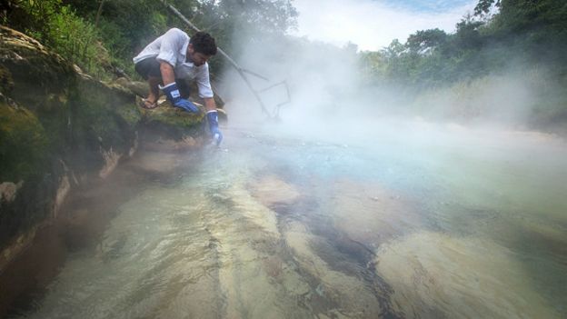 «Inmediatamente saqué mi termómetro, y la temperatura promedio del agua en el río era de 86ºC… no precisamente los 100ºC del punto de ebullición, pero suficientemente cerca», dice Ruzo. «Para mi sorpresa, el agua era limpia y su sabor era agradable, algo muy poco común en los sistemas geotérmicos».