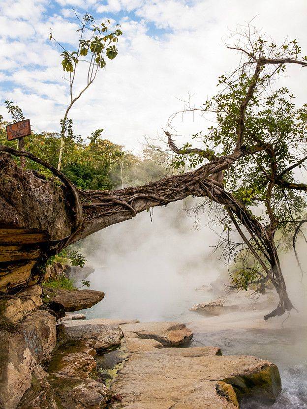 «A pesar de todo mi escepticismo científico, terminé adentrándome en la selva, guiado por mi tía, a más de 700 kilómetros del centro volcánico más cercano y, honestamente, preparándome mentalmente para ver el legendario “arroyo cálido de la Amazonía”. Y entonces… escuché algo. El sonido de un oleaje suave que se tornó más y más fuerte a medida que nos acercamos. Sonaba como olas del mar constantemente rompiendo, y cuando estuvimos más cerca, vi humo, vapor, elevándose entre los árboles», explica el geólogo, que al llegar al lugar se encontró con el siguiente escenario: