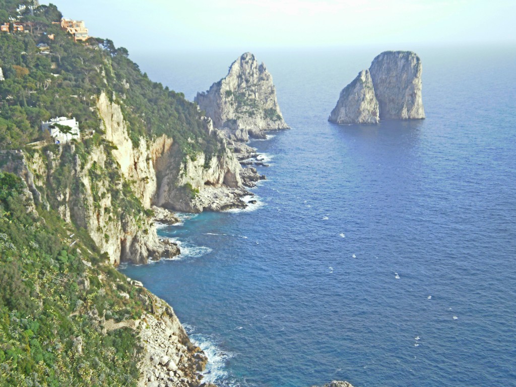 Uno puede pasear por la Vía de Tragara hasta el Belvedere de Tragara , en mitad de las casas aisladas donde algunas personas se han hecho un paraíso particular, mirando a lo lejos la casa audaz de Curzio Malaparte , y contemplar las casitas delicadas y ligeras de Marina Picola, y mirar los farallones con su dramatismo en mitad del mar, como si fueran gritos, llamadas de atención, elegías, fracturas de amor, y ver como las pequeñas barcas se pierden entre ellos , y luego al atardecer sentir como todo eso se difumina y forma parte de una misma pasión rojiza, de un mismo olvido. Se puede incluso bajar serpenteando por el sendero hasta Marina Picola , estar hablando con los pescadores y tomar vino en una taberna sencilla, mirar con una nostalgia sobrenatural que parece abrir otra dimensión.