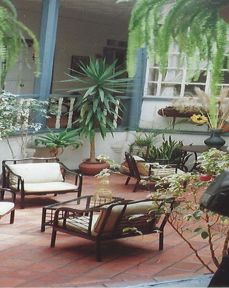 Nos alojábamos en el hotel Macondo que tenía un patio lleno de vegetación, ventanas de fascículos y pasillos con balaustradas. Nos había gustado su nombre y luego nos encantó la estancia allí. Tomar el desayuno al lado de los grandes jarrones, debajo de las brisas, era una delicia al comenzar las mañanas. Estaba al lado sur del río, en la parte nueva, pero se iba por una calle llena de encanto.