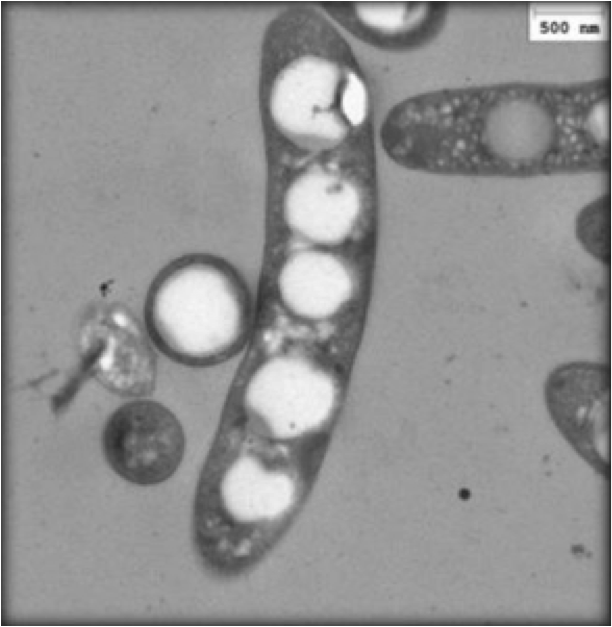 Rhodospirillum rubrum después de fermentar syngas. Los gránulos que se observan en su interior son el biopolímero PHA | Olga Revelles