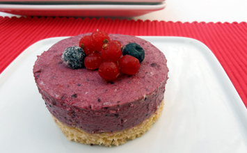 Picamos los frutas del bosque y los mezclamos con el Quark, añadimos la mermelada. Fundimos el chocolate blanco a baño maría. Partimos la tarta por la mitad (se hace muy bien con un hilo). Una parte sirve de base y la otra parte la desmenuzamos. Juntamos ahora el Quark con la fruta, el chocolate blanco, el coco rallado y las migas. Ablandamos la gelatina en agua fría cuando esté blanda la fundimos sobre el fuego muy flojo y con mucho cuidado. Añadimos a lo anterior. Cubrimos la base y dejamos varias horas en la nevera.