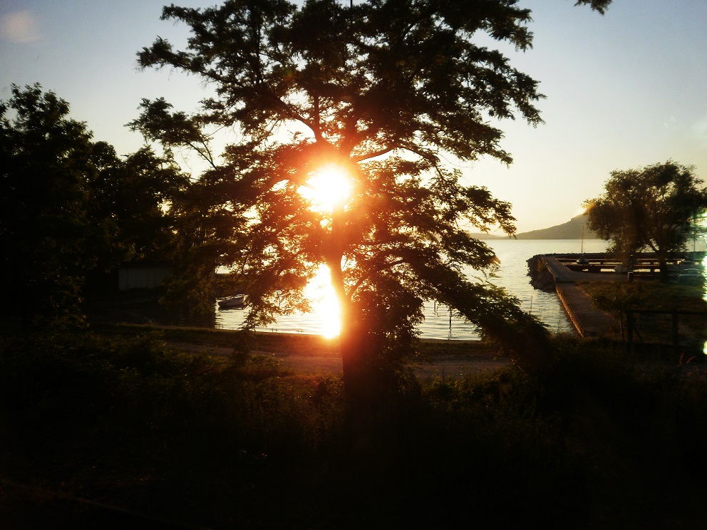 El Balatón no está rodeado de montañas, no es un secreto escondido, pero es una especie de mar interior, de mar doméstico lleno de inmensidad y de pequeñez, un mar como una sala de estar inmensa y variada, llena de vibraciones infinitamente cambiantes, está en mitad de una inmensa llanura donde se extienden los bosques y los cañaverales misteriosos que cantaba Nikolaus Lenau, donde se extienden palacios aislados y extensiones inmensas llenas de ocas locas como las que salen en las películas de Kusturica, el lago está en medio de una extensión enorme como un pañuelo, y no grita ni asombra ni nos aparta del mundo, pero nos saca suavemente de la solidez de la tierra y nos hace vivir en barcas o latidos, nos da la magia del agua, nos da silencios inmensos y confesiones que casi no se expresan en orillas sencillas como Chopin, parece como las leyendas o las coplas populares, no tiene grandezas épicas, pero susurra sin fin en los atardeceres, en los infinitos pueblos pequeños que se demoran en un tiempo secreto, en las pequeñas estaciones que se asoma a un agua tímida y susurrante, el lago es una intimidad bajo los árboles, son unas conversaciones sin sobresaltos en los que se extiende la sencillez apasionada de toda una vida, es un sitio para morir sin aspavientos o para seguir viviendo y recordar todas las pasiones apagadas, es un sitio para conversaciones de Sandor Marai en cualquier bar sin pretensiones donde se digan secretos de toda una vida sin darle mayor importancia, es el secreto de toda nuestra vida a la que nunca hemos hecho caso, el lago es para quedarse en cieto momento y decir: ¿cómo no me he dado cuenta de nada?, es para demorar una copa al anochecer como yo hice a finales de los ochenta y sentir que aquí no hubo ninguna gran batalla pero se apreció con transparencia lo que vale cada instante, el agua es tan sutil y tranquila como los cables de los trenes, la calma del agua es como la calma imposible de la vida.