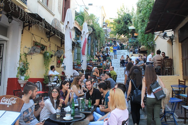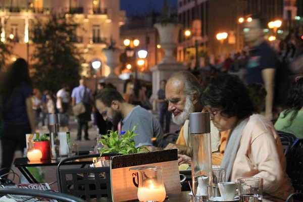 A las seis la atmósfera de la ciudad empieza a ser soportable porque el sol busca el ocaso, cansado de quemar campos y humanos. Las calles que bordean la Acrópolis, desde la plaza Monastiraki hasta su museo, son un hervidero de restaurantes y bares acogedores que colocan sus mesas y sus sillas en las calles escalonadas que suben hacia el templo. Nadie, viendo la alegría de esa zona que engloba los barrios de Psirí, Thisio y Gazzi, puede hablar de una ciudad deprimida. Quizá Ícaro está resurgiendo de sus cenizas. Quizá, lo más seguro, es que ésta que veo es la Atenas de postal.