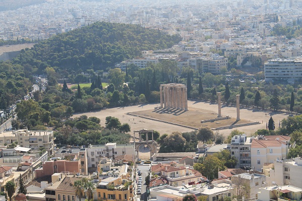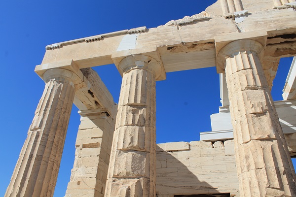 Atenas es una ciudad en ruinas, pero voy a ver las ruinas del pasado y por ello, tras un mal desayuno, asciendo hacia la Acrópolis por un paisaje yermo de olivos y cipreses tan sedientos de agua como yo. Llueve 70 días al año y lo hace de forma escasa. Una botella de agua a tres euros para mitigar la sed y ascenso a esa montaña de mármol para admirar la elegancia y la perfección del Partenón y sus templetes adyacentes, para abarcar desde su cima marmórea esa ciudad enorme que es Atenas que hierve bajo un sol de octubre.