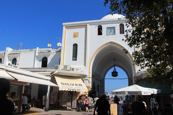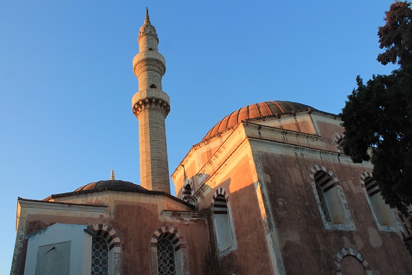 No es fácil pasear por calles atestadas de comercios en donde se vende artesanía de gusto dudoso, helados, zumos de fruta, cerveza en bota de vidrio, camisetas que no se sabe dónde se confeccionaron, jabones aromáticos, aceitunas envasadas al vacío, paraguas en un lugar en donde nunca llueve, objetos de cuero repujado, ajedreces: faltan las especias para ser un perfecto bazar turco. Y de la dominación turca de cuatrocientos años, llevada a cabo por Solimán el Magnífico en 1522, habla la mezquita del mismo nombre y paredes rosáceas que está en lo alto de la capital, con su cúpula esférica de la arquitectura religiosa ortodoxa, que hicieron suya los arquitectos otomanos, y el espigado minarete, una réplica pequeña de Santa Sofía y todas las mezquitas turcas, a pocos pasos del imponente castillo de la Orden de San Juan de Jerusalén, los Caballeros de Rodas, a quien se debe también la impresionante muralla.