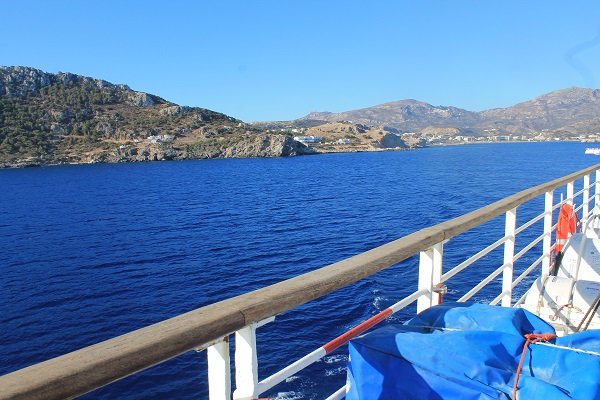 El barco, un ferry, sale del puerto de Rodas a una buena hora, las tres de la madrugada, así es que Ulises duerme hasta las dos, se levanta de la cama del hotel alertado por el despertador, toma un taxi, saca su billete en el puerto con viento fuerte, aborda ese barco que viene de otra isla y cae de nuevo en la cama de su cabina con vistas al mar que a esas horas es invisible, así es que duerme muy plácidamente, movido suavemente por el oleaje de ese Egeo hasta muy avanzada la mañana siguiente en la que se levanta para tomar un café con leche en vaso de parafina y una enorme torta rellena de queso que le harta tanto que, tras dar dos vueltas por cubierta, hacer una docena de fotos al barco, a los pasajeros, al mar, a las islas lejanas (en Grecia siempre hay una isla a la vista), se vuelve de nuevo a la cama del camarote, cansado de tanta hiperactividad.