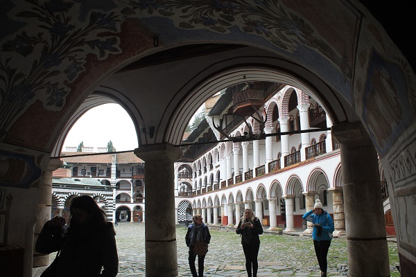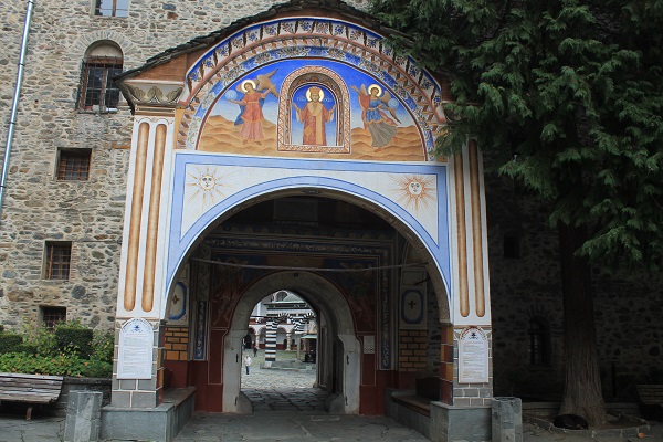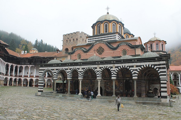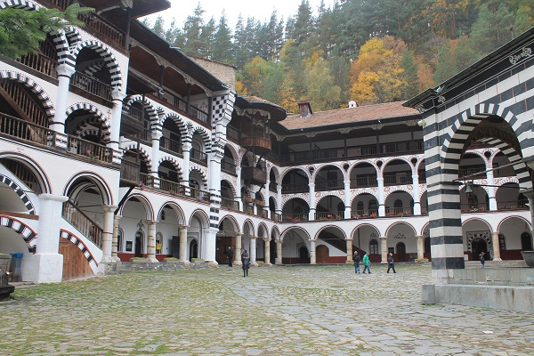 El monasterio de Rila es un conjunto monacal del siglo X fundado por San Iván de Rila, un ermitaño que vivió toda su vida dentro de una cueva. El cenobio está enclavado entre montes y bosques, en el valle del río Rilski y junto al Drushlyaviysa. Un muro considerable de 22 metros de altura lo encierra y defiende e impidió que lo desvalijaran durante sus muchos siglos de existencia. En sus buenos tiempos, los monjes contrataban a una especie de samuráis, un cuerpo de élite armado de 40 guerreros, que guardaban el recinto y lo protegían de las numerosas incursiones de partidas de bandoleros, y, en caso de ataque, se refugiaban monjes y guardianes en la Torre Jreliyova vecina a la iglesia, a cuyos pies se sitúan ahora vendedores de iconos.