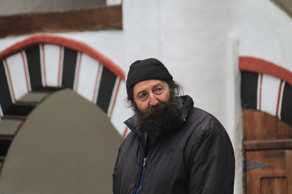 Ulises pasea en estado de gracia absoluta por ese patio majestuoso que rodea la iglesia y bebe agua fresca del caño de una fuente que viene directamente del río Rilski. En el recinto cuadrangular, que rodea y protege el monasterio, distribuidos en los corredores de sus tres plantas que dan la vuelta completa, están las residencias de los monjes, un centenar de celdas. Uno de los monjes, altísimo y con poblada barba negra y cabellos revueltos que oculta bajo el kamelaukion, el característico bonete negro ortodoxo, se pasea veloz por ese patio empedrado, agitado al viento el rason que le llega a los pies. Otros, tocados también con kamelaukion, se asoman a las barandillas de sus corredores para mirar a los escasos turistas que en esa época del año visitan el monasterio.