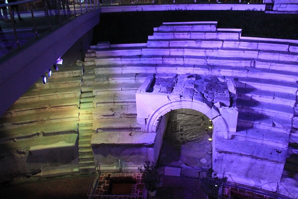 Reina en esa zona antigua, sin tiendas y con algún restaurante cerrado, una cierta decadencia, pero todavía no ha descubierto Ulises el monumento más emblemático de la antigua ciudad romana que casi corona esa colina: el anfiteatro romano, tan bien conservado como el de Mérida, está en la calle Tsar Ivaylo. Espectacular y grandioso, destacan los dos niveles con las estilizadas columnas del sacaenae fons tras el proscenio y el graderío de mármol alrededor de la orquesta. Y, como sucede en el estadio de abajo, un par de bares han situado sus terrazas junto al monumento para que sus clientes disfruten de tan espectacular vista.