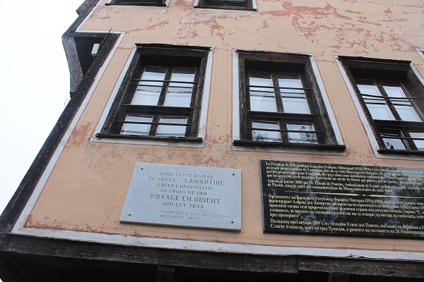 Por calles empedradas de forma harto tosca y en fuerte pendiente, sube Ulises observando a derecha e izquierda casas de empaque como la Casa Kuyumdzhiogh, sede del museo Etnográfico, un caserón con fachada pintada de negro, una especie de contrasentido en un país en donde el sol no luce de forma excesiva, la Casa Nedkovich, la Casa Georgiadi, la Casa Hidliyan, la Casa Ritora, casi todas del siglo XVIII y XIX, y la Casa Lamartine en donde se alojó el poeta y viajero francés a su paso por Bulgaria, hoy museo y sede de los escritores búlgaros, cerrada a cal y canto y con aspecto de abandono. En el exterior de la casa de Lamartine hay una placa de homenaje que recoge palabras de elogio de François Miterrand hacia su compatriota cuando visitó la ciudad.