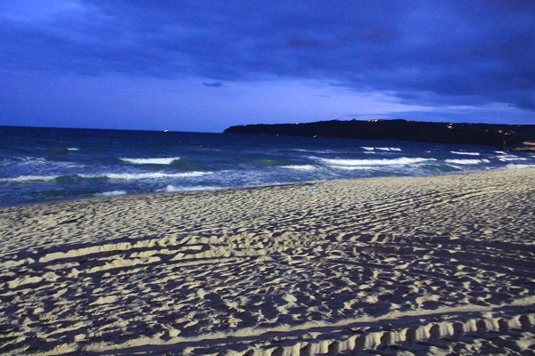 Se ha ido el sol y reina una luz apagada en Varna en donde sigue el ambiente de fiesta de fin de semana. Sigue paseo abajo, hasta topar con el mar, y pasea por la acera marina gozando de la visión de la playa de forma intermitente, cuando se lo permiten los numerosos restaurantes, chiringuitos y hasta hoteles que asientan sus reales en la playa, hasta que llega a una zona deprimida de ella, con locales cerrados a cal y canto y otros sencillamente convertidos en astillas por algún temporal. Hay locales en el paseo marítimo con nombres tan literarios como Ernie Hemingway, pero no se atreve a pedir un mojito por miedo a una decepción como la de la noche anterior.