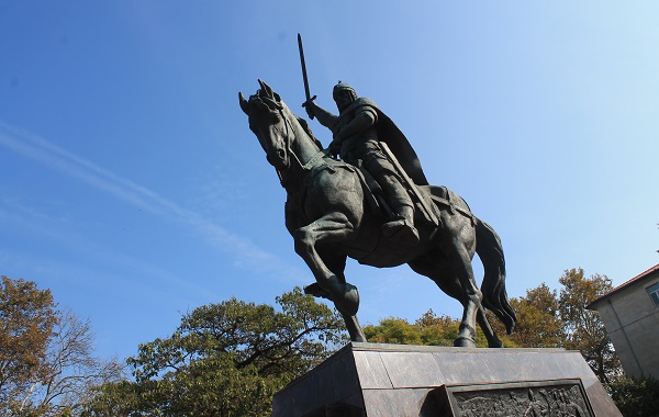 Cuando cruza la calle, y tras tomar una cerveza al sol en una agradable terraza junto a otro parque de la zona peatonal, se acerca a fotografiar la estatua ecuestre del zar Kaloyan, el asesino de romanos, a caballo y espada en ristre, un héroe nacional búlgaro que reinó una década, entre 1197 y 12o7, año de su muerte en Tesalónica. Kaloyan fue un guerrero cruel y violento (su cuerpo fue hallado en la Iglesia de los Cuarenta Mártires de Verliko Tarnovo) que extendió el imperio búlgaro y no perdió una sola batalla al frente de su ejército con el que combatió a los cruzados y capturó a Balduino I de Constantinopla a quien descuartizo sin compasión cuando su esposa Ana de Cumania lo acusó, falsamente, de hacerle proposiciones amorosas. En los laterales del pódium se pueden ver en altorrelieves las gestas bélicas y la solemne coronación del monarca búlgaro.