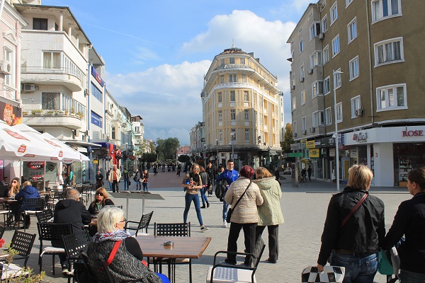Recorre esos amplios paseos peatonales muy animados de gente, porque es sábado; se detiene a husmear en tiendas de discos y librerías; observa el bullicio de los jóvenes, los ciclistas que pasan, el único hombre estatua pintado de blanco, los gatos bien cuidados que pasean entre los peatones en un país en donde debe haberlos más que humanos, y recala finalmente en la terraza del restaurante Europa, en el Bulevar Silviniza, epicentro de la marcha de Varna, a comer un plato de humus, otro de aceitunas, que nada tienen que ver con las sabrosas griegas, unos raviolis de espinacas con salsa de mascarpone y lo más parecido a la crema catalana, la creme brulé.