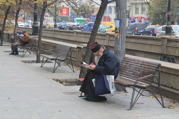 Ulises solía, en sus buenos tiempos, interpretar muy bien los mapas, pero en la vida se van perdiendo aptitudes, a la misma velocidad que neuronas, y no encuentra el centro, pero no le importa porque en su búsqueda descubre preciosas iglesias ortodoxas con nártex decorados con frescos e interiores suntuosos y exhaustivamente decorados hasta el extremo de no dejar un solo hueco libre, como la iglesia de Santa María de la Gracia, del siglo XVII y restaurada en el 1928, que tiene pinturas exquisitas en su nártex y en el interior, y conserva un lujoso relicario de plata en forma de la misma iglesia. Hace Ulises una especie de ruta por esas iglesias (mientras las búlgaras tienen cúpulas bulbosas y las griegas redondeadas, las rumanas optan por las cúpulas poliédricas) situadas a ambos lados de la Calea Victoriei por la que desciende después de haber cruzado por la plaza de la Universidad, en donde un edifico muy moderno y arquitectónicamente desafortunado (las paredes no tienen ventanas y el techo, un voladizo plano, sobresale sin sentido), presumiblemente el Teatro Nacional, frente al rascacielos del Hotel Intercontinental, le hace reparar en dos de ellas, especialmente. En una, un pope lee solemnemente versículos, y a veces los canta con voz grave, para tres feligreses sentados, una mujer que duerme, un tipo grandullón y al encarado y él si se cuenta como feligrés. Lo que ve en otra iglesia próxima a la plaza Unirii le llama más la atención: un grupo de beatos pasa una y otra vez, arrastrándose y de rodillas, por debajo del altar de las reliquias de un santo, y se maravilla de la agilidad de esos creyentes, de edad avanzada, que serpentean por el suelo de la iglesia hasta salir al otro lado de ese altar sin golpearse la espalda o la cabeza contra el mármol. Está viendo Ulises en Rumanía bastante más religiosidad que en Bulgaria, quizá porque los turcos no pisaron apenas esas feroces tierras valacas.