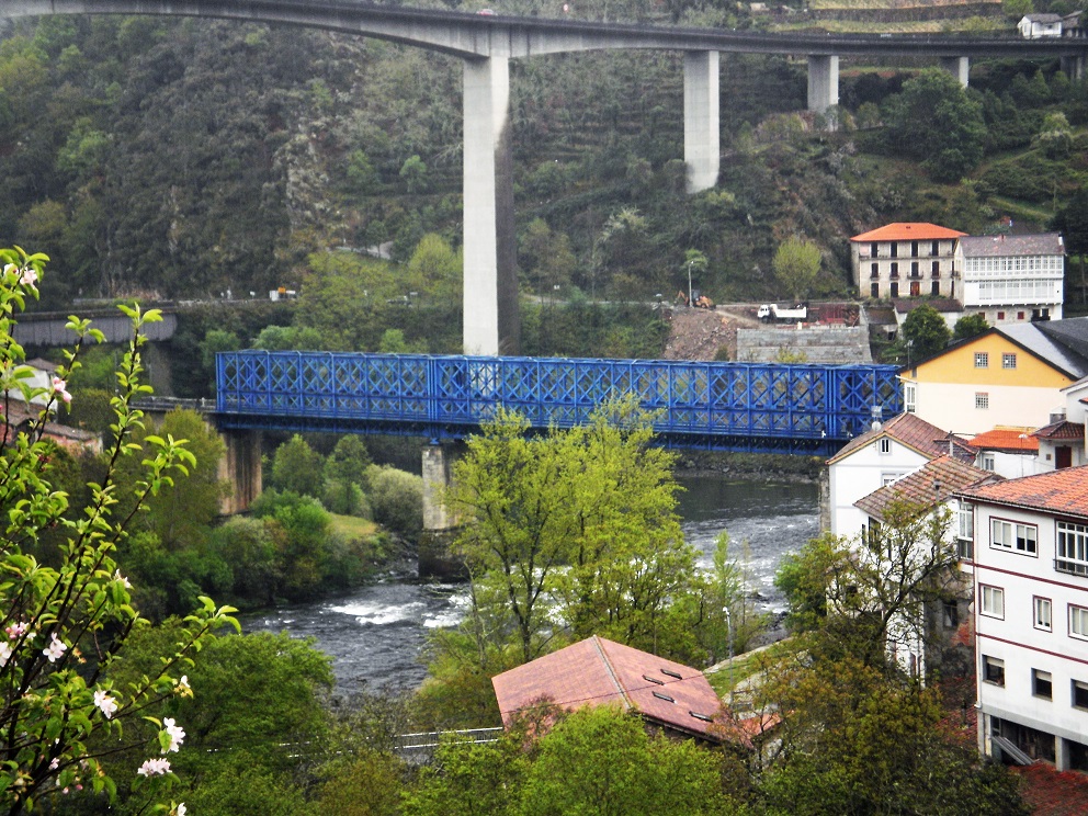 Hay una estación de trenes que casi no funciona ya. Hay un puente impresionante que enlaza las montañas , que fue diseñado por la escuela de Eiffel y parece que tuviera la audacia de este ingeniero, parece que fuera una torre acostada que comunica las montañas. Se llega allí siguiendo el curso del Miño por la Ribera Sacra, o siguiendo el curso del Sil, o desde Orense, o desde Lugo, o desde Lalín en Pontevedra. Cerca de allí está San Esteban de Ribas de Sil, un monasterio inmenso con tres claustros, fundado en el siglo X, construido en varias épocas, con una cocina enorme, donde un arquitecto moderno puso cristal y aluminio sin encomendarse a Dios ni al Diablo.