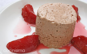 Antes de servir cortamos el parfait en lonchas o con la ayuda de un anillo de emplatar sacamos el parfait y decoramos el plato con frutas al oporto.