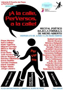 Con motivo de las celebraciones que el grupo poético PerVersos organiza en su segundo año de vida, esta tarde tendrá lugar un recital bajo la fórmula de Micro Abierto. El evento se desarrollará a partir de las 19:00 h. en la Plaza Mayor de Valladolid, junto a la librería El sueño de Pepa. En torno al micro desfilarán el cantautor Edgar Masa y 34 poetas en dos rondas de minuto y medio cada por autor en lo que será una particular hoguera de versos en la Noche de San Juan.