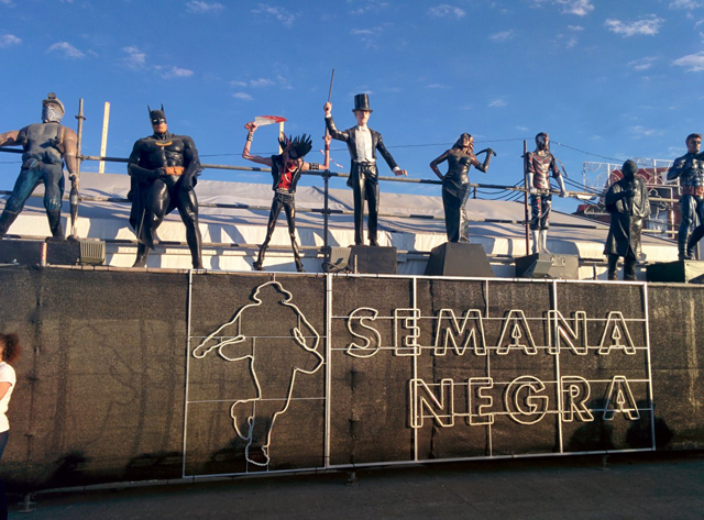 Los debates eran el Musel, en los viejos astilleros, al borde del agua, y en un cuadrilátero de boxeo. Crucé golpes con Manuel Quinto, Juan Madrid, Andreu Martín y Manolo Vázquez Montalbán. Me debieron dejar KO seguramente. Se debatió sobre La crítica y la novela policiaca, El género policiaco en la Europa del Este y la perestroika, La literatura policiaca de habla hispana, La literatura policiaca europea, entre la tradición anglo y el polar francés, Drogas y literatura policiaca y La literatura policiaca norteamericana. Ahí es nada. Dentro del festival había pan (los chiringuitos de comidas y los peroles en donde se cocían enormes pulpos que formaron parte del paisaje de la Semana Negra desde el minuto uno) y circo (allí estaba hasta Ángel Cristo), siguiendo las directrices del fundador del evento y alma mater: poder hablar de literatura policial con un churro en la mano.