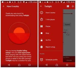Lo que hace Twilight es colocar un filtro de luz rojiza, de un tono suave, que reduce la fatiga visual y favorece la relajación ocular y, por consiguiente, el descanso. Cuando activamos dicho filtro, podemos ajustar tanto la intensidad, como el tono del color, que fluctúa entre rojo, naranja, amarillo y azul, siendo los dos primeros los más indicados. Asimismo, tenemos la posibilidad de bajar aún más el brillo de la pantalla.