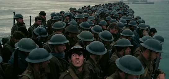 No hay apenas épica en la película más allá de esas batallas aéreas que se hacen algo monótonas salvo cuando un piloto británico es rescatado in extremis de la carlinga que se inunda una vez ameriza por el señor Dawson, prototipo del héroe anónimo que interpreta Mark Rylance. Las huidas y las derrotas militares carecen de ella. Solo se muestra ésta cuando el comandante Bolton que interpreta Kenneth Branagh, uno de los pocos rostros conocidos del reparto junto a un irreconocible, como siempre, Tom Hardy (el piloto Farrier de la RAF, que siempre permanece con el casco de aviador puesto y al que prácticamente sólo se le ve la cara en la secuencia final) se emociona cuando vislumbra en el horizonte esa flotilla de barcos civiles británicos que acuden al rescate de los suyos en una muestra de patriotismo (el espíritu galvanizador de Winston Churchill, uno de los políticos más brillantes con los que contó el Reino Unido) o el recibimiento caluroso de la población a los soldados repatriados que no están muy orgullosos de haberlo sido y se muestran avergonzados de su estatus.