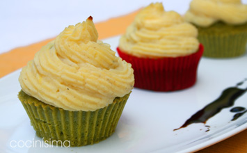 Cupcakes de guisantes con topping de chirivía y patata