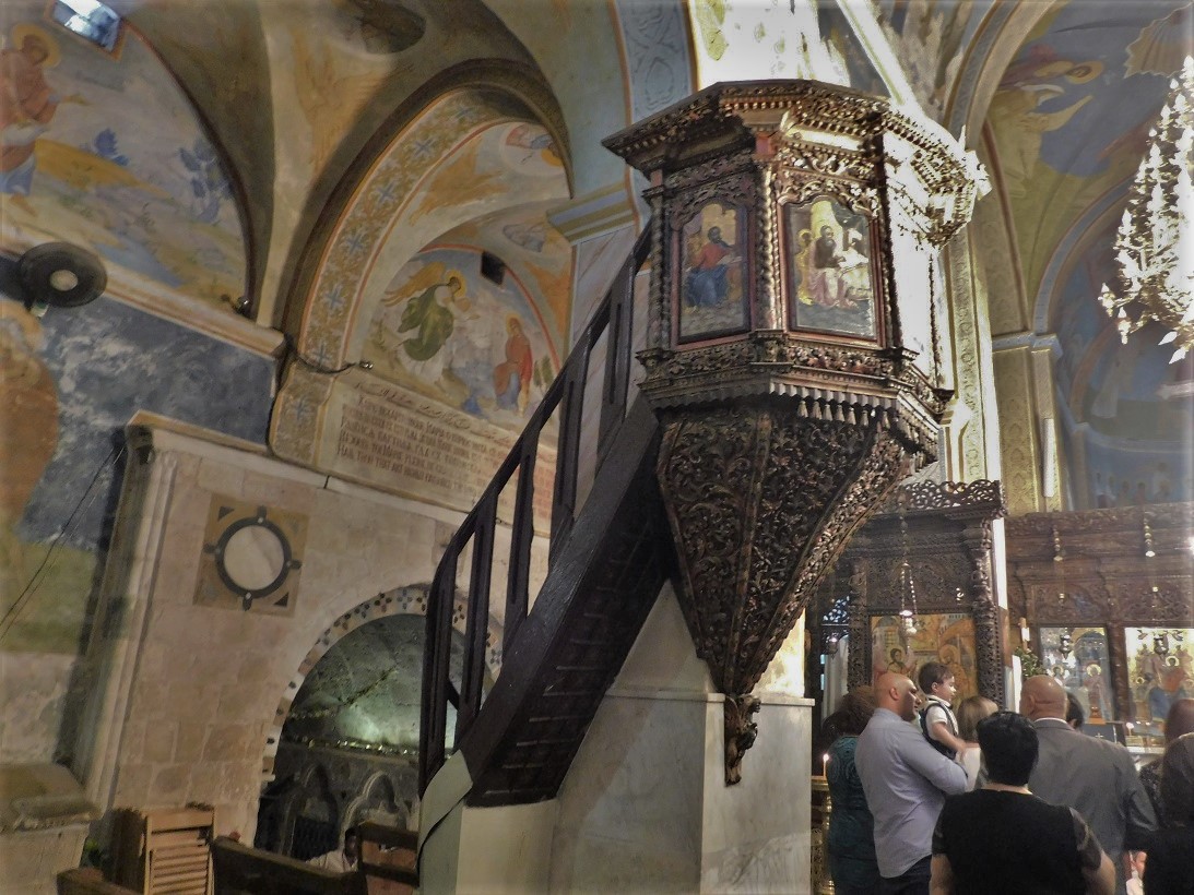 Pero los cristianos ortodoxos dicen que la Anunciación fue en la Plaza de la Iglesia, donde hay una iglesia ortodoxa. La iglesia es bella y mística, pero debajo está el manantial donde se supone que María iba a buscar agua. Los peregrinos se sacuden un poco fanáticos para beber de esa agua y llenar una botella. Lo cierto es que el agua sabe muy bien.