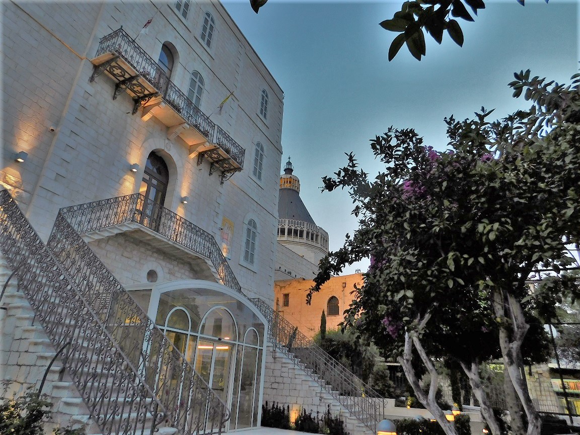 Al anochecer las cúpulas de la basílica contra el cielo vistas con una cerveza desde el jardín de Casa Nova, el alojamiento franciscano, parece como una linterna gigantesca. Hay un momento en que compiten las campanas con los gritos de un muecín que llama desde una mezquita cercana.